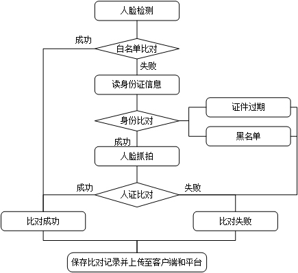 Ø 门禁控制:当陌生人或白名单人员刷身份证比对成功或白名单人员刷脸自动识别通过后,系统控制门禁自动开门;若比对失败,则系统不会控制门禁自动开门。